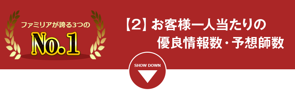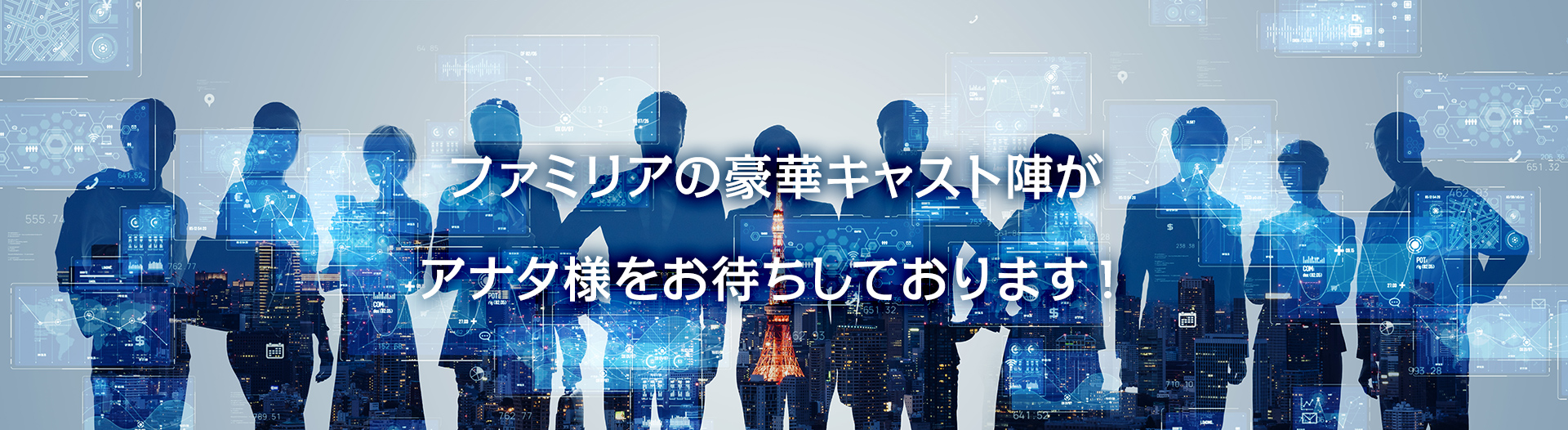 お客様を唯一無二の主役に導きながらも、決して一人にはしない。 それが“ファミリア”という存在です。 わからないを怖がらない。 むずかしいを遠ざけない。 稼ぐことをためらわない。 そんな思いを体感してもらうべく、私たちはお客様一人一人が輝くための伴走者となり、 共に夢を描き、その実現に向かって戦う、パートナーでいることを心がけております。 業界最高峰の宝くじ投資会社として、 輝かしい実績があるのは当たり前、一流予想師が集まってくるのも当たり前、 私たちの追求は、そのもっと奥にある、きめ細かで華やかな「おもてなし」です。 ファミリアでは、お客様の一番身近となるサポーターやスタッフの質にも、 他の追従を許さない程に、力を注いでおります。 こうして、ありがたいことに、 お客様一人当たりのサポート体制・満足度No. 1を守り続けられているのです。